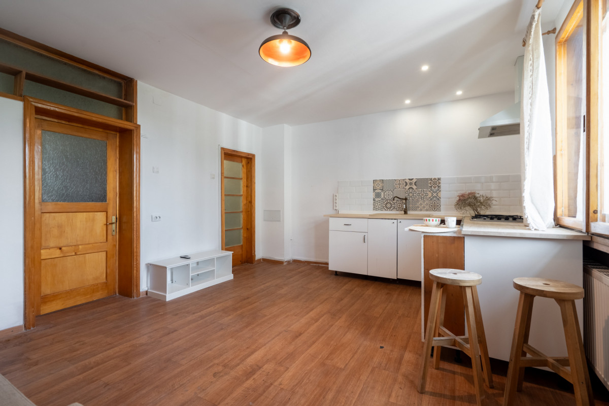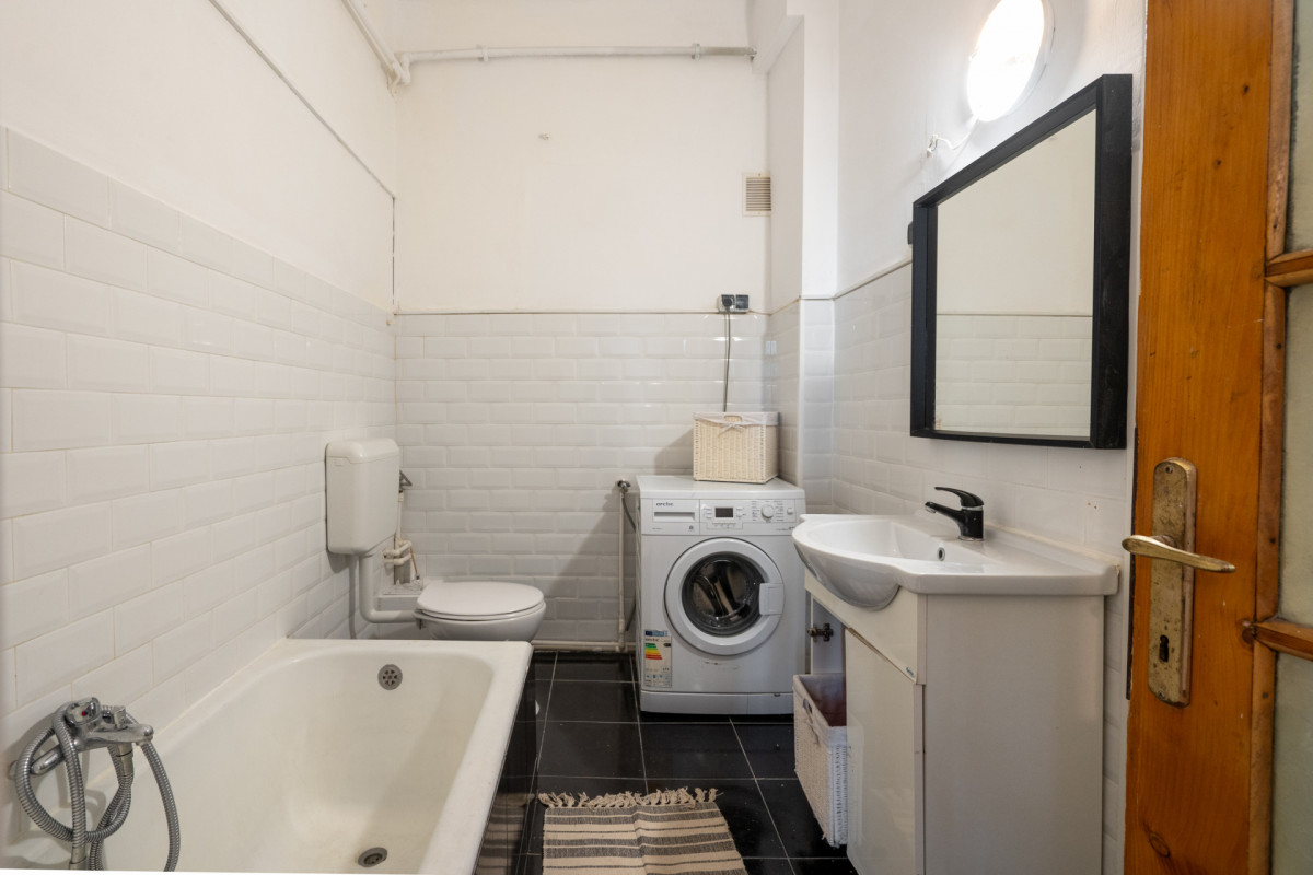 O mica bijuterie de 3 etaje a ramas neatinsa de vreme in inima centrului financiar al capitalei. La doi pasi de Piata Victoriei, pe o strada cu nume de doctor, ca in Cotroceni si cu acelasi aer interbelic, poti avea un loc cald si primitor, pentru un start cu dreptul in orasul care nu doarme! Ai tot ce iti trebuie, poate doar sa schimbi canapeaua cu un pat confortabil sau sa adaugi un pat, ca loc este destul! Te vei minuna in fiecare zi, urcand scarile, de ceea ce stiau sa faca mesterii interbelici si de cat de durabile erau materialele folosite atunci: marmura, mozaic, lemn masiv. Scara in sine este un mic muzeu. Despre zona si despre cat de repede ajungi oriunde ai nevoie, nu povestim. Hai acasa!