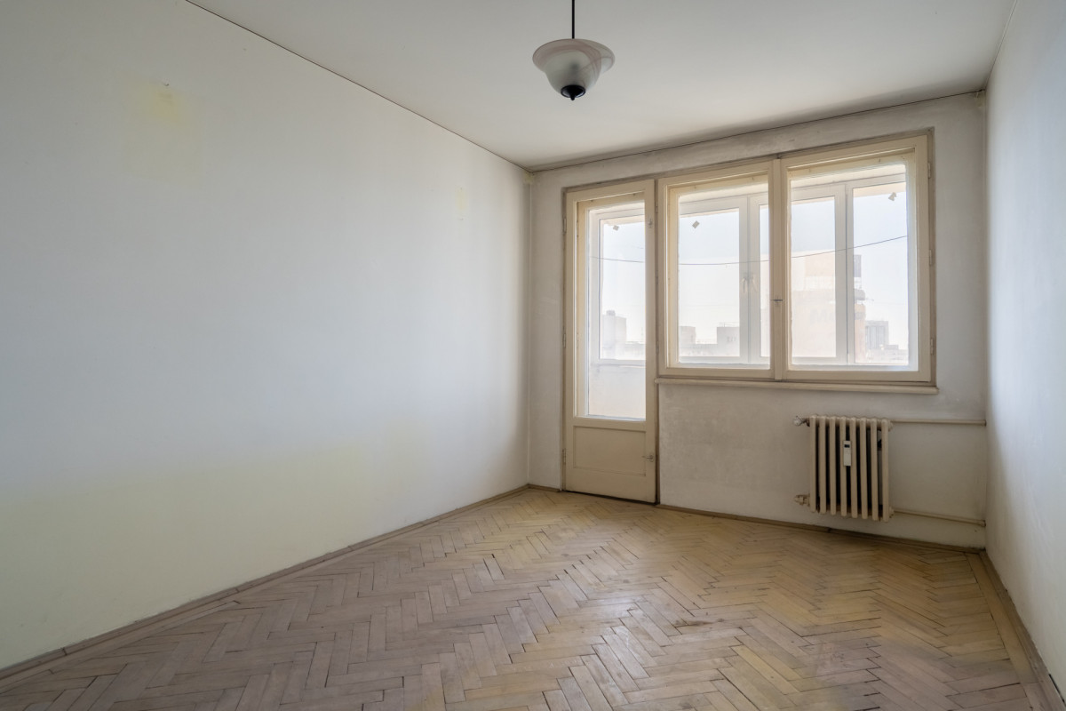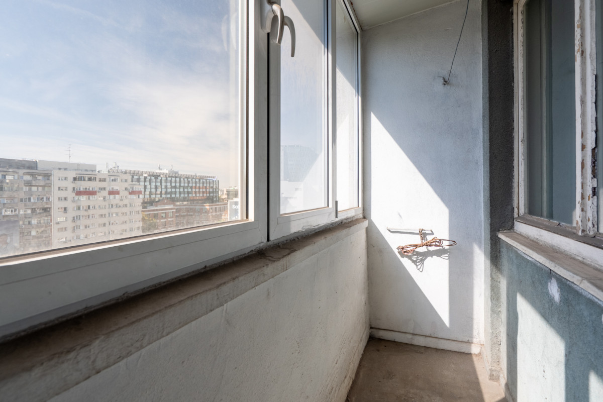 Pentru o astfel de pozitie, merita sa iti sufleci manecile si sa te apuci de treaba, pentru ca avem de vanzare un apartament de 2 camere foarte fain, pe care il poti amenaja grozav! Se poate decomanda chiar, prin spatele peretului de nord al livingului intersectandu-se doua debarale, una din holul principal si una din holul de la baie. Daca se elimina peretele despartitor dintre ele, se creaza un hol prin spatele livingului, ce merge direct catre dormitor si baie, conferind statut de camera independenta si livingului.