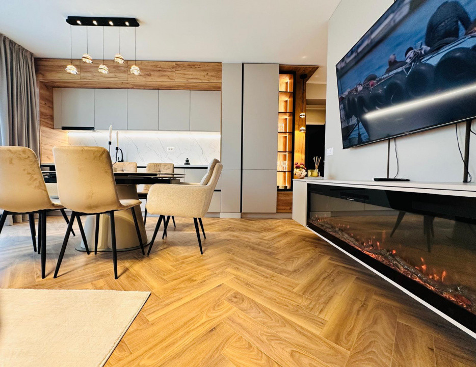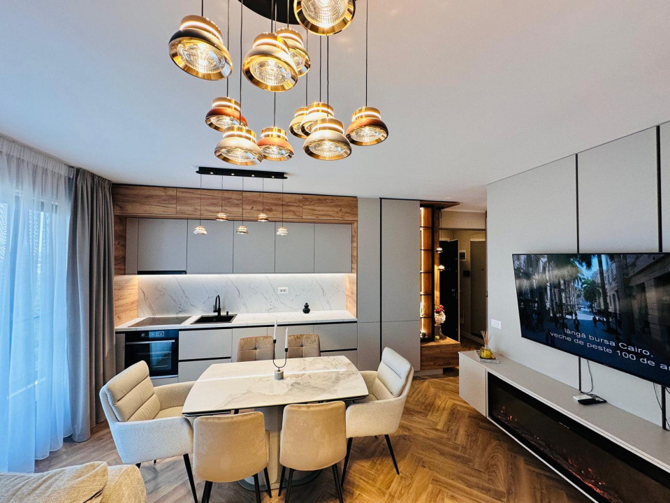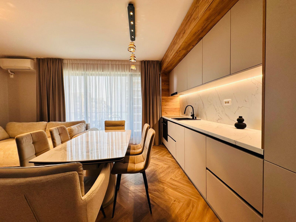 Apartamentul este amenajat de un designer de interior și este mobilat și utilat complet, gata pentru mutare. Stilul modern și finisajele de calitate se pot observa în fotografiile din anunț.