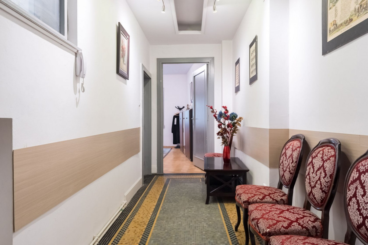 Intr-o zona unde gasim cele mai multe birouri de avocati pe cap de locuitor (am putea chiar sa decretam zona, ca fiind a birourilor de avocatura), va propunem spre cumparare un apartament ce se asorteaza cu profesia de avocat: sobru, elegant, dar si primitor in acelasi timp. Cladirea se afla pe strada ce leaga Hanul Berarilor de Judecatoria sector 3 si Tribunalul vechi, fiind un bloc tip plomba, cu o arhitectura deosebita a spatiilor comune, precum si a apartamentelor. Desi incadrat ca urmare a expertizarii din stilou, in anii 90, in categoria de risc seismic 1, in urma cu cativa ani s-a refacut o noua expertiza foarte minutioasa, urmare a caruia imobilul este incadrat in casa a doua de risc seismic. De aceea si actualul proprietar a investit in restaurarea completa a apartamentului, prin reconditionarea tamplariei, a parchetului si a finisajelor ceramice, aducand la lumina atmosfera interbelica si modenizand instalatiile termice si electrice, pentru confortul actual. In subsolul cladirii apartamentul detine si o boxa de depozitare spatioasa, de 8,4 mp.