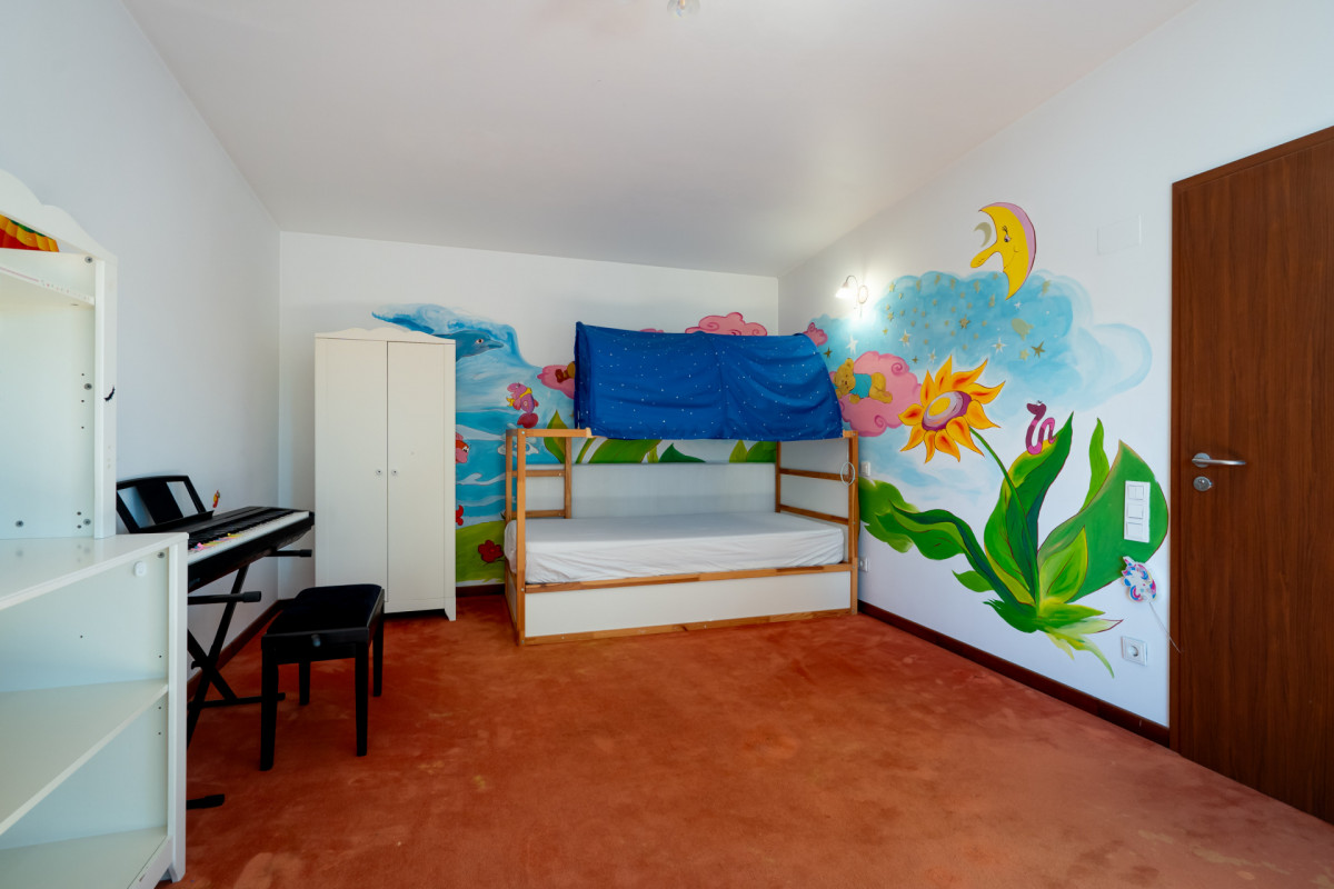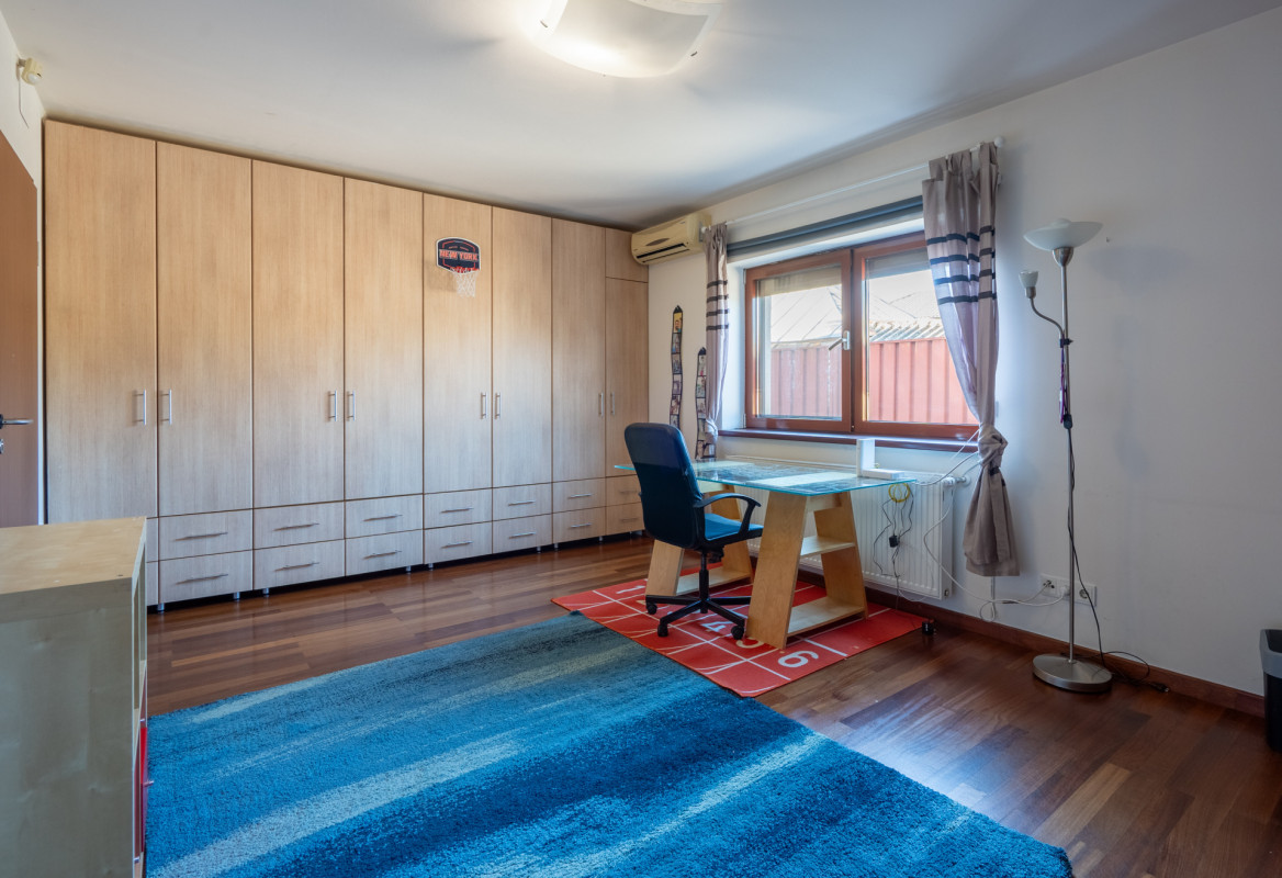Casa este dispusa pe parter si etaj, avand dormitoare foarte spatioase, unul la parter si doua la etaj, suprafete vitrate mari, intimitate si eleganta.
